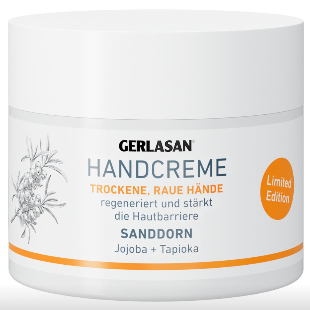Подаруйте своїм рукам ніжний догляд з обмеженою серією крему GERLASAN з обліпихою — ідеальне рішення для щоденного зволоження та захисту шкіри. Завдяки цінним інгредієнтам, таким як олія жожоба, тапіока та сечовина, крем підтримує природну регенерацію шкіри та зміцнює її захисний бар'єр.