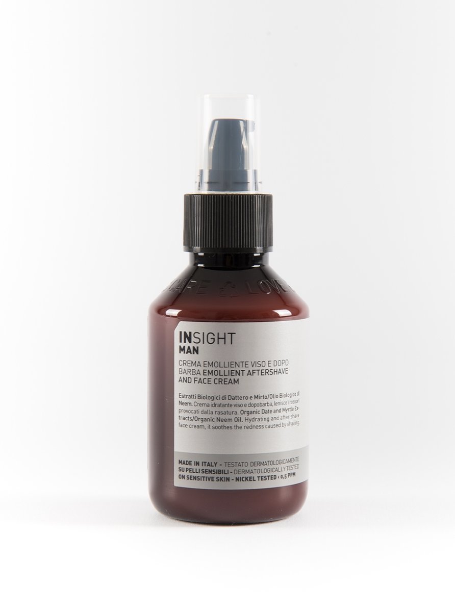 Пом'якшуючий крем після гоління Insight Man After Shave and Face Cream заспокоює роздратовану шкіру, знімає запалення. Завдяки ретельно підібраним активним компонентам засіб зволожує і живить шкіру, з ним після процедури гоління не буде відчуття сухості або стягнутості шкіри.