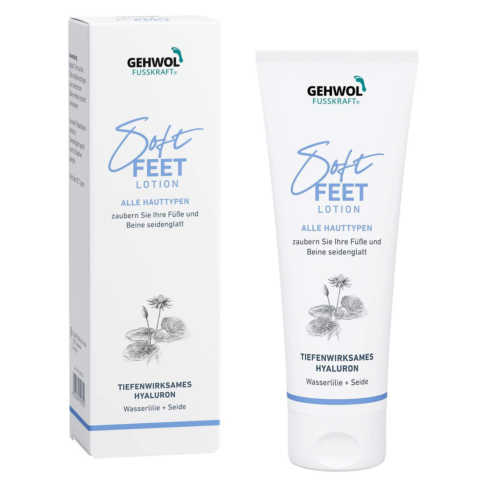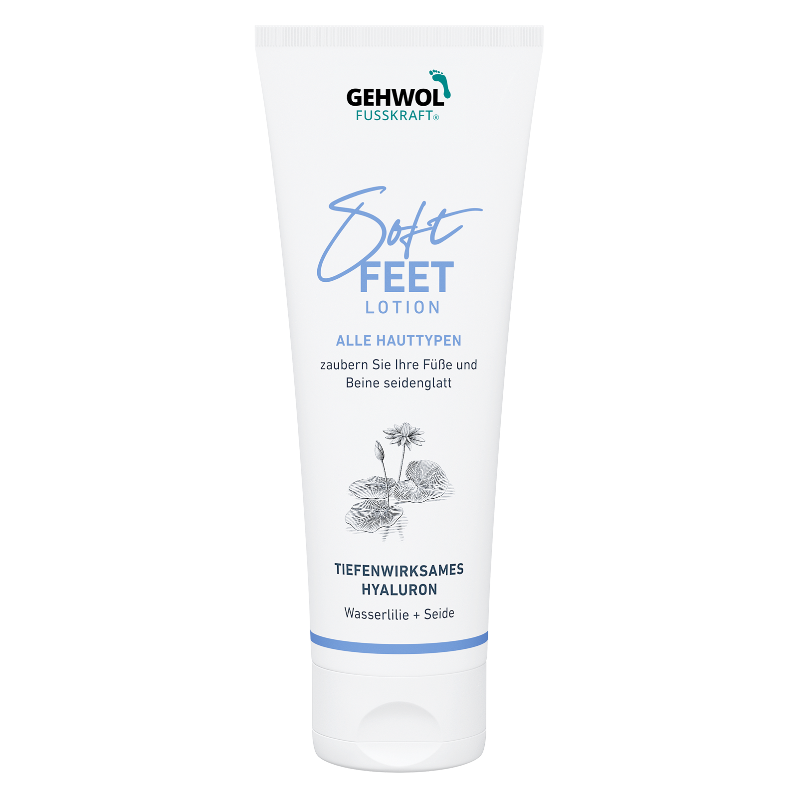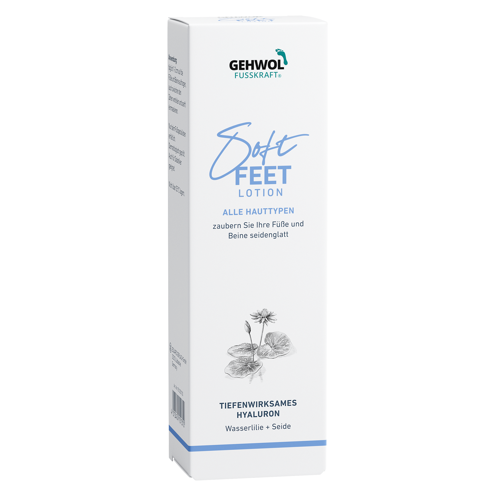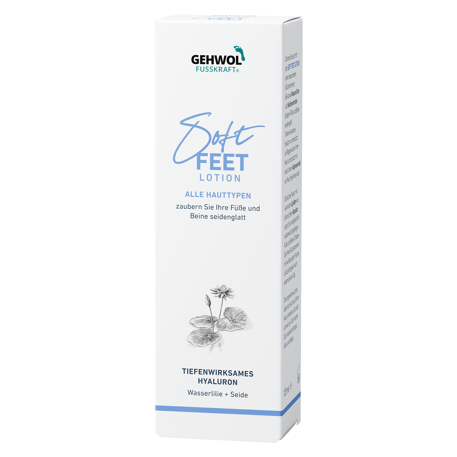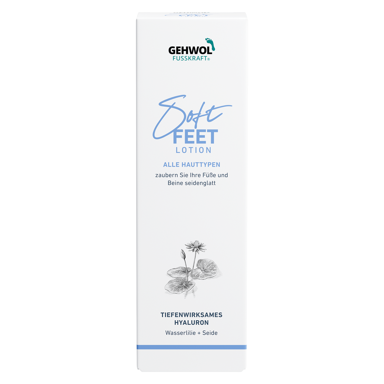 Легкий зволожуючий Лосьйон "Водяна лілія та шовк" із серії GEHWOL FUSSKRAFT Soft Feet надає шкірі ніг та стоп м'якість, шовковистість та доглянутий вигляд. Він освіжає, знімає втому та тяжкість у ногах, а також забезпечує догляд завдяки спеціально підібраним активним компонентам.