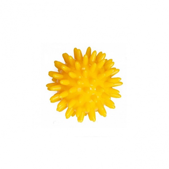 Жовтий масажний голчастий м'ячик діаметром 6 см застосовується при лікувальному і профілактичному масажі, реабілітаційній терапії після травм і операцій на будь-яких частинах тіла. М'ячик покритий м'якими округлими шипами, що забезпечують масажний ефект. Застосовується такий масажний м'ячик в лікувальному і профілактичному масажі, реабілітації після травм і операцій, а також у комплексній терапії.