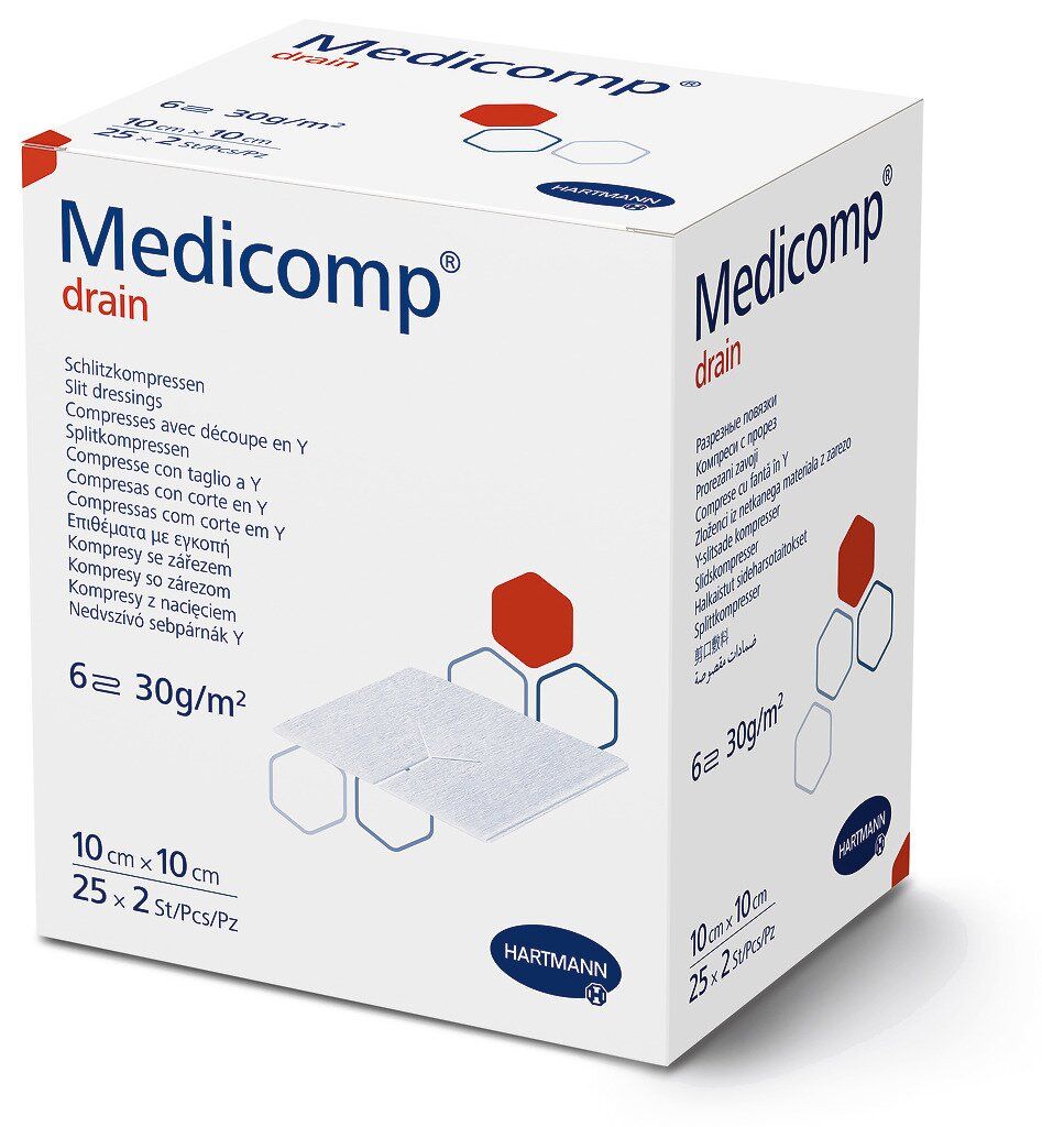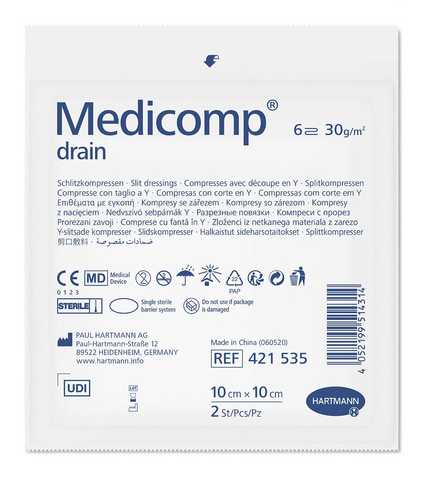 Опис Medicomp Drain 10 х 10 см, стерильні серветки з нетканого матеріалу з розрізом