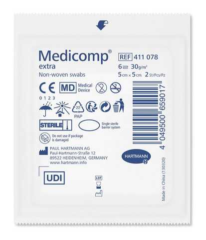 Опис Medicomp Extra 5 х 5 см, стерильні серветки з нетканого матеріалу