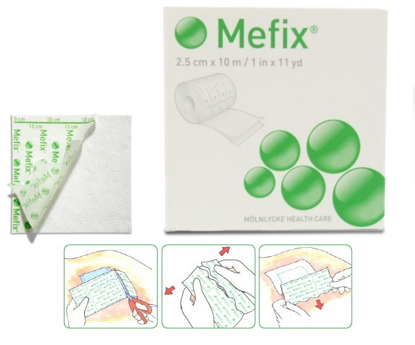 Самоклейка стрічка Mefix® використовується для фіксації (пов'язок, тампонів, катетерів, канюль тощо.)