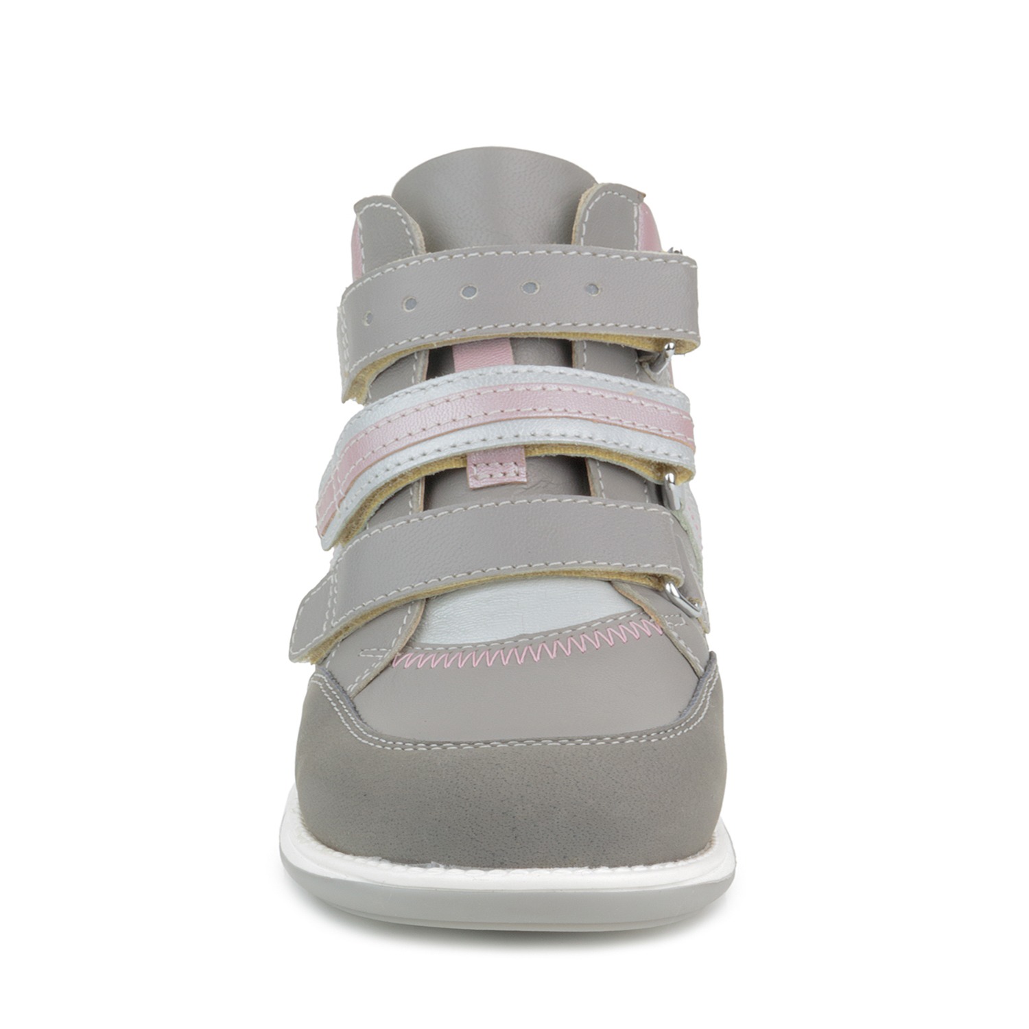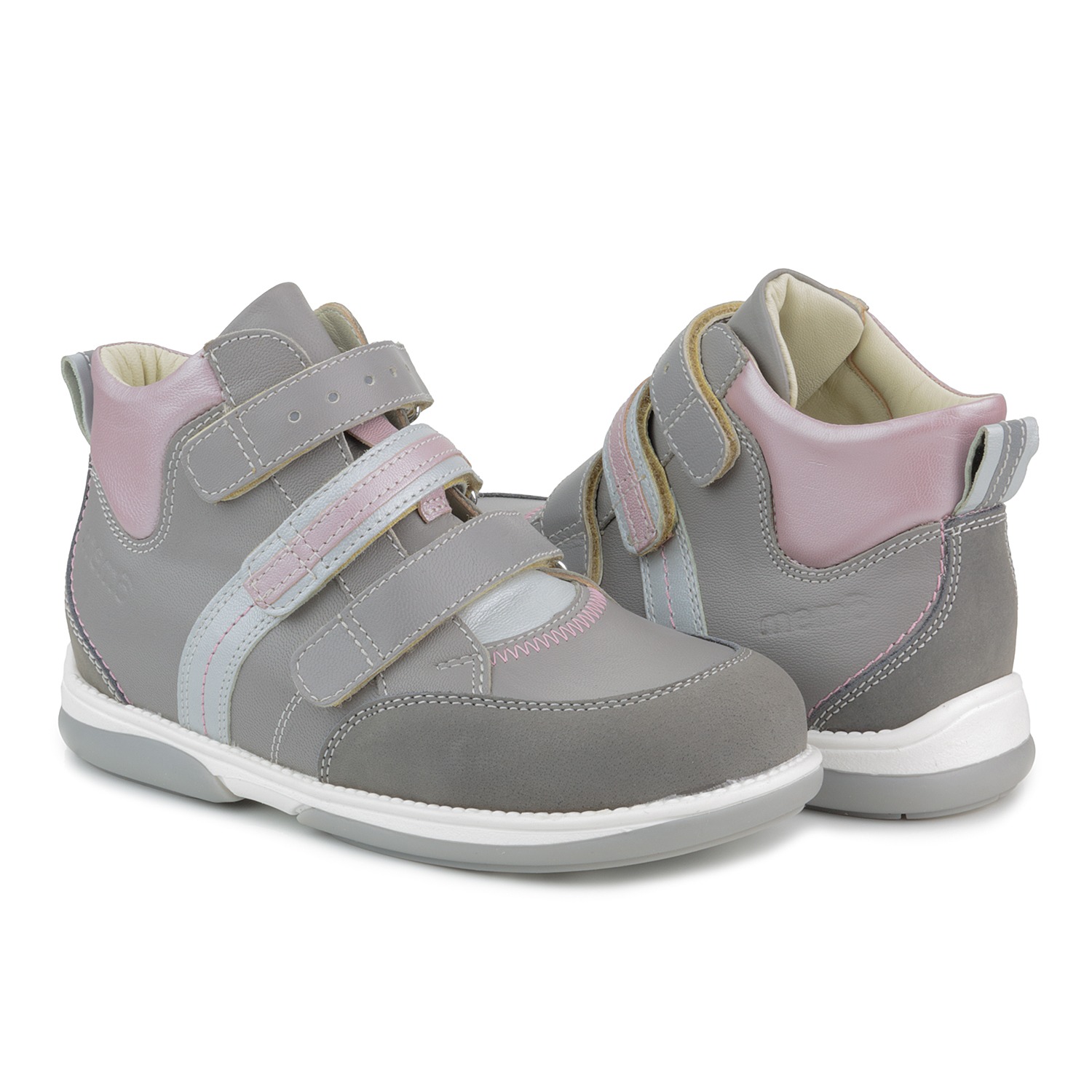 Дитячі ортопедичні черевики на липучці з високоякісної шкіри призначені як для хлопчиків так і для дівчаток шкільного віку. Використовуються в якості взуття для зовнішнього застосування, завдяки якій можливе продовження профілактичної та корекційної роботи системи. Мають жорсткий фіксатор стопи, доступні з новою підошвою MEMO. Адаптовані для ортопедичних устілок.