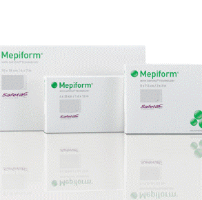 Mepiform® - тонка еластична пов'язка, що складається з шаруватого матеріалу (поліуретану і нетканого полотна), покритого м'яким силіконовим шаром. Ці пов'язки зводять до мінімуму травмування рани і тканин довкола неї, що призводить до зниження больових відчуттів пацієнта. Ризик мацерації мінімальний, завдяки герметичному щільному приляганню пов'язки до країв рани.