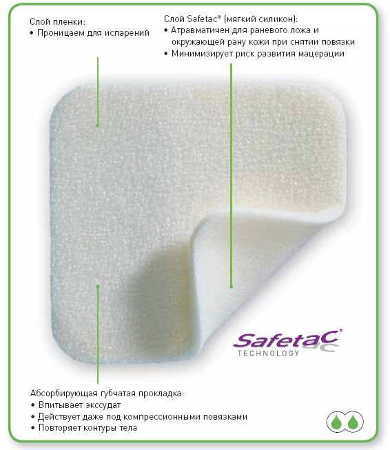 - м'якого силіконового контактного шару (Safetac).