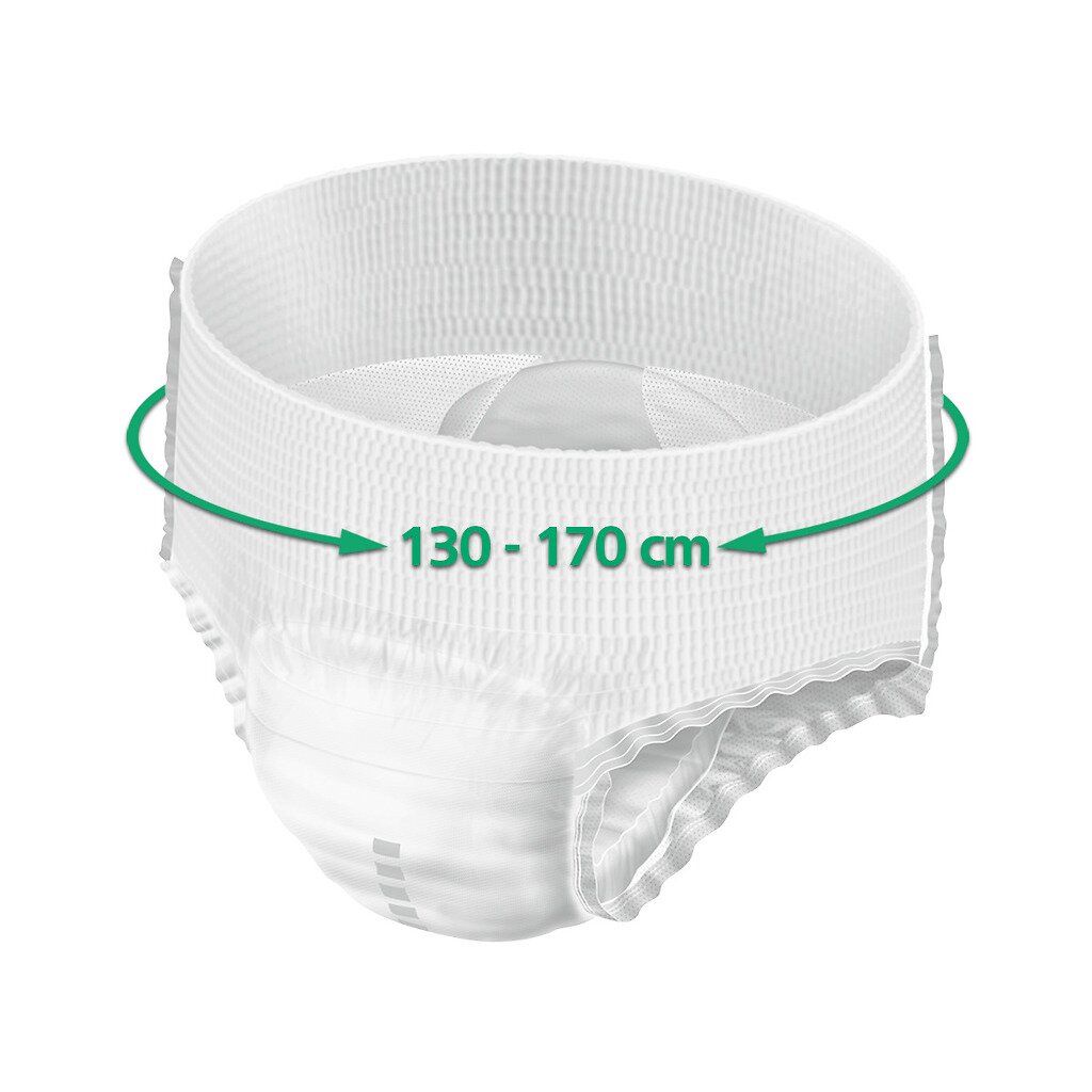 Труси MoliCare Premium Mobile виглядають і відчуваються як звичайна нижня білизна завдяки анатомічній формі, м'якому матеріалу і позначкам для зручної посадки і непомітності. Шар кучерявих волокон забезпечує високий антибактеріальний ефект і нейтральний ефект pH 5,5 для підтримки здоров'я шкіри.