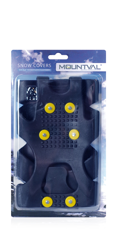 Льодоходи Mountval демонструють відмінну стійкість та зчеплення на засніжених або крижаних поверхнях. Відмінно підходять для зимових прогулянок на свіжому повітрі та довгих походів, подорожей, сезонного відпочинку. Вони виготовлені із гнучкого пластику, мають міцні металеві шипи Mountval Snow Covers.
