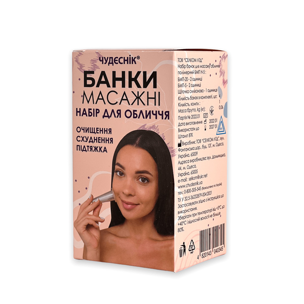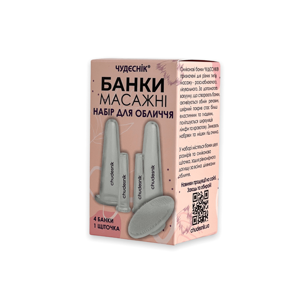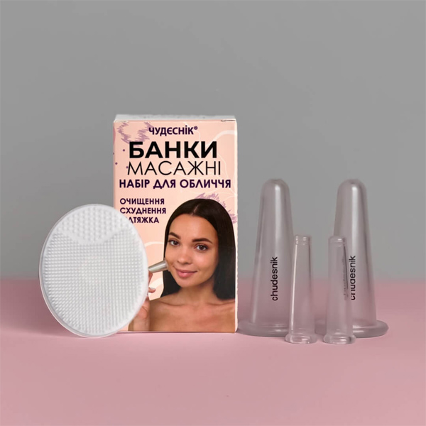 Опис Набір масажних банок для обличчя та повік (+щіточка для вмивання у подарунок ) Chudesnik