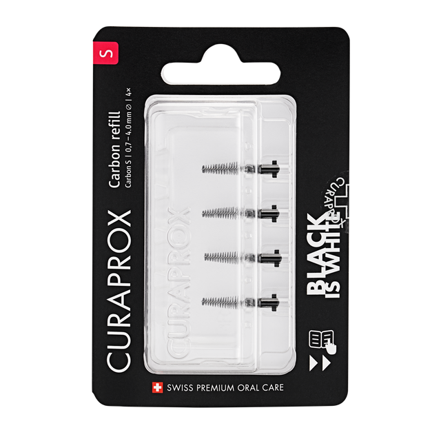 Опис Набір міжзубних йоржиків Curaprox Black is white refill CPS Carbon S, 4 шт.