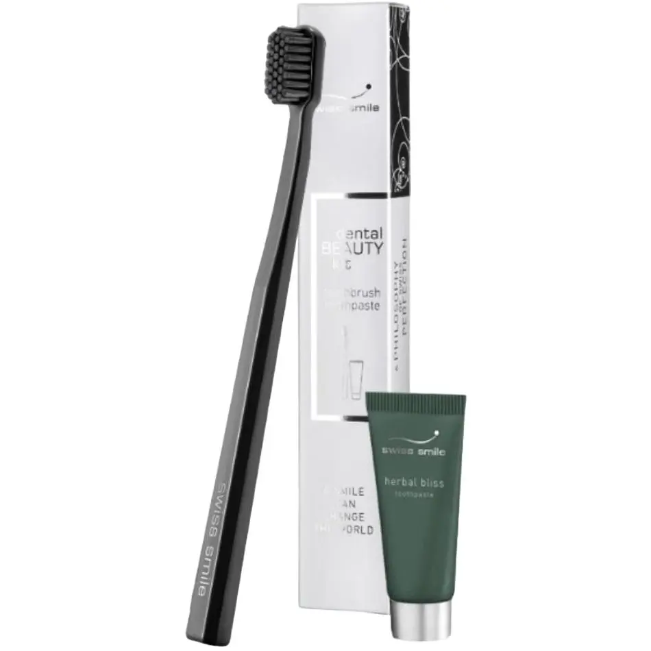 Набір зубна щітка чорна та вітамінно-трав'яна зубна паста 5мл Swiss Smile Dental Kit 2516: Свіжість і здоров'я для ваших ясен