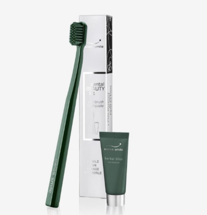 Опис Набір зубна щітка зелена та вітамінно-трав'яна зубна паста 5мл Swiss Smile Dental Kit 2516