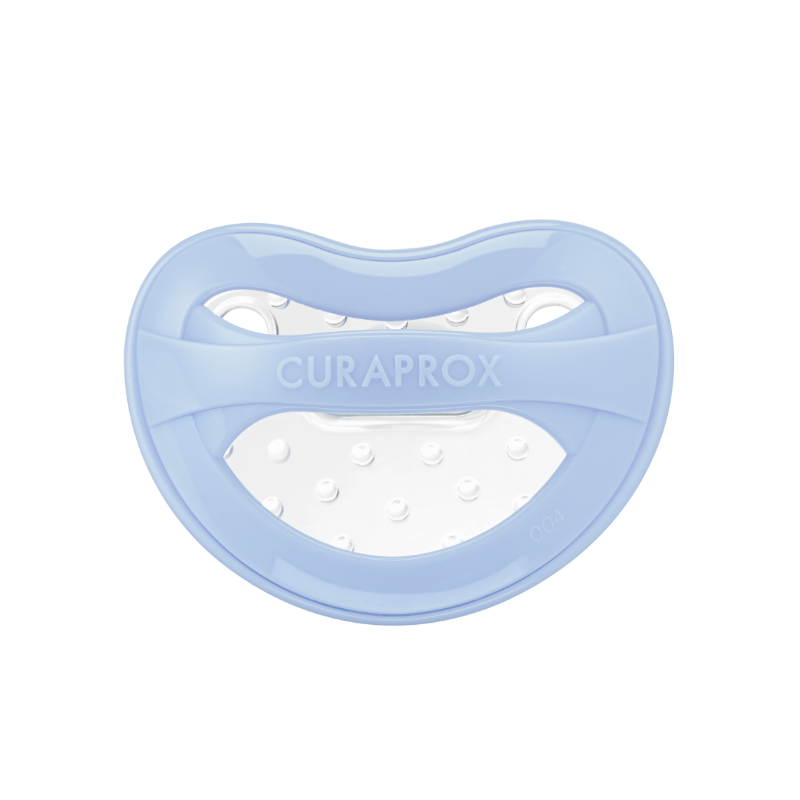 Соски круглої форми інших компаній чинять сильний тиск на небо дитини. Цей тиск посилюється вакуумом, що створюється при ссанні. За рахунок плоскої форми соска Curaprox не створює тиску в ротовій порожнині, піднебіння розвивається правильно, регулюється правильне носове дихання, також йде розвиток правильного прикусу.