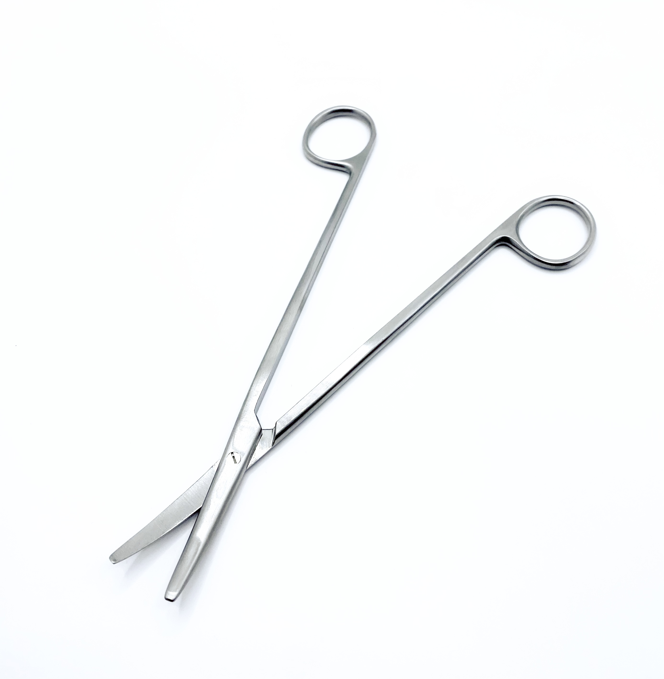 Опис Ножиці для розтину м'яких тканин, зігнуті, тупокінцеві. Довжина 18 см