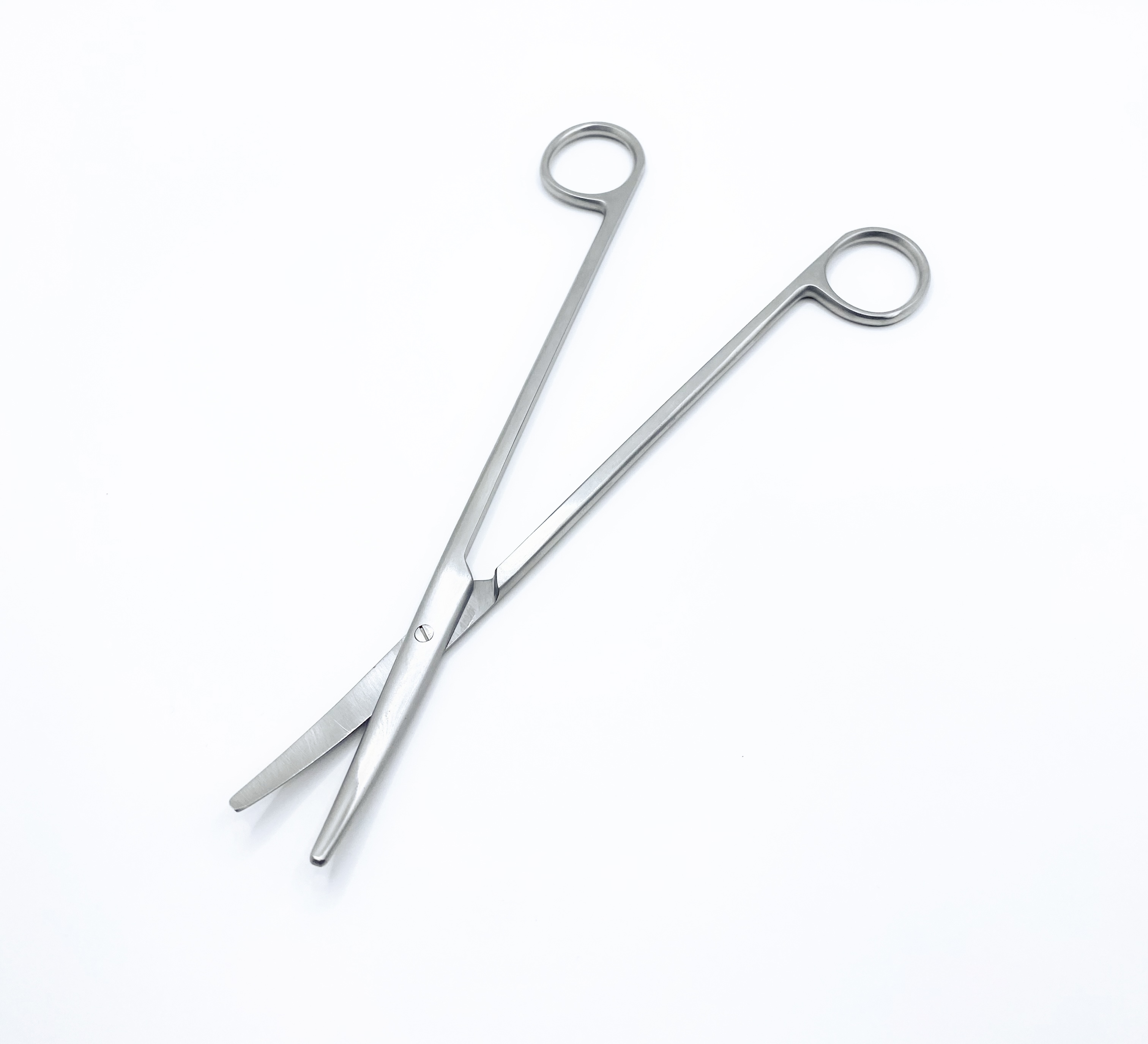 Опис Ножиці для розтину м'яких тканин, зігнуті, тупокінцеві. Довжина 20 см