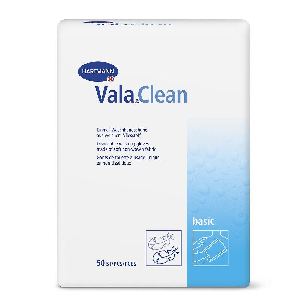 Одноразові рукавички для миття Vala®Clean basic, виготовлені з м'якого і стійкого до розриву нетканого матеріалу. Добре абсорбують і стійкі до розривів. Для інтимної гігієни при нетриманні, індивідуальної гігієни у всіх областях догляду за хворими.