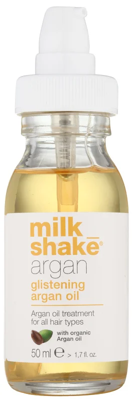 Якщо ви регулярно доглядатимете за своїм волоссям, позитивні результати не забаряться. Тому ви неодмінно оціните олійний комплекс для догляду за всіма типами волосся з аргановою олією Milk Shake Argan Oil. Особливо, якщо ваше волосся жорстке й має тенденцію до розпушування. Арганова олія інтенсивно живить волосся та робить його м’яким на дотик і гарним на вигляд.