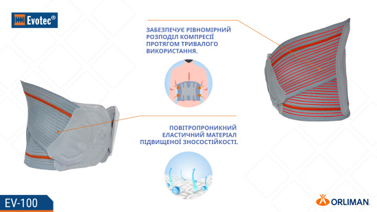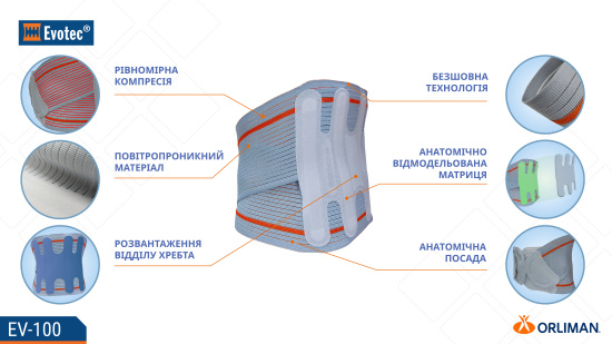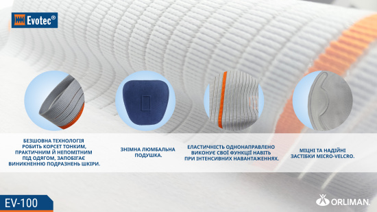 Опис Напівжорсткий корсет Orliman Evotec EV-100, Іспанія