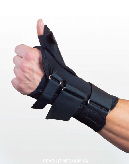 Ортез призначений для повної фіксації променево-зап'ясткового суглоба та великого пальця у положенні відведення. Забезпечує фіксацію та рівномірну компресію суглобів. Виготовлений з еластичного дихаючого матеріалу, що ефективно підтримує температурний баланс шкіри.