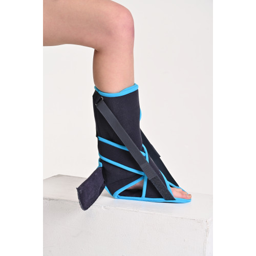 Тутор для гомілковостопного суглобу (деротаційний чобіток) - це складна конструкція, яка накладається на нижню третину гомілки до пальців стопи травмованої ноги. Має вигляд чобота, до якого прикріплюється поперечна перекладина, що запобігає ротації стопи і всієї ноги в право і вліво. Додаткові фіксуючі ремені утримують стопу від згинальних рухів вгору вниз.