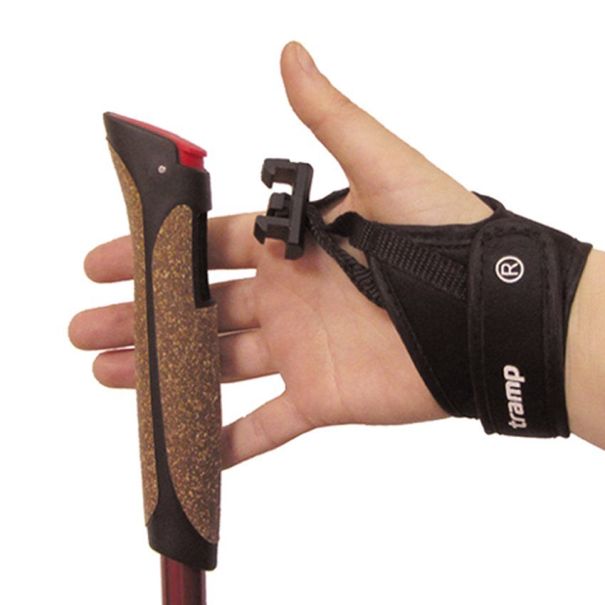 Темляк- "рукавичка" для занять nordic walking швидко відстібається / пристібається до палиці, регулюється під обсяг кисті застібкою на липучці, а також може регулюватися "ближче-далі" по відношенню до рукояті.