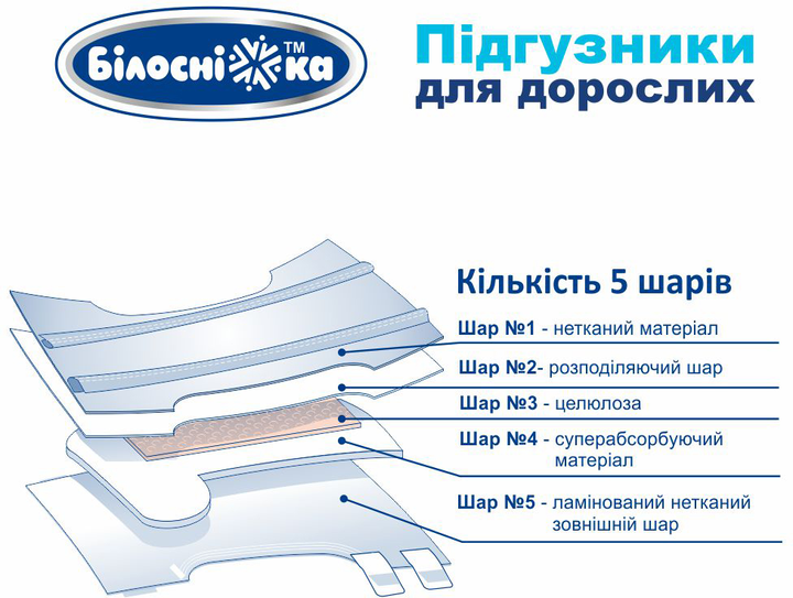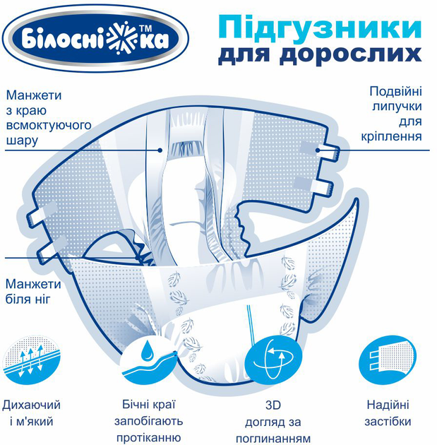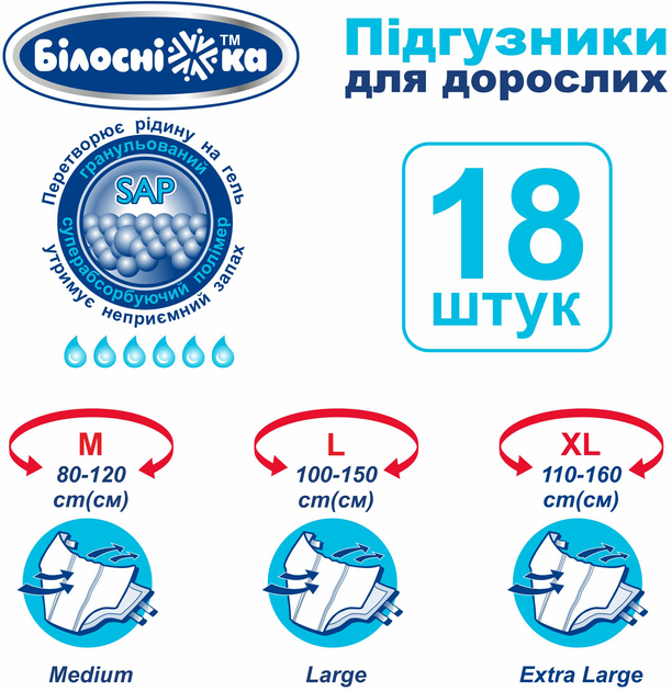 Опис Підгузки для дорослих "Білосніжка" 6 крапель XL 18 шт