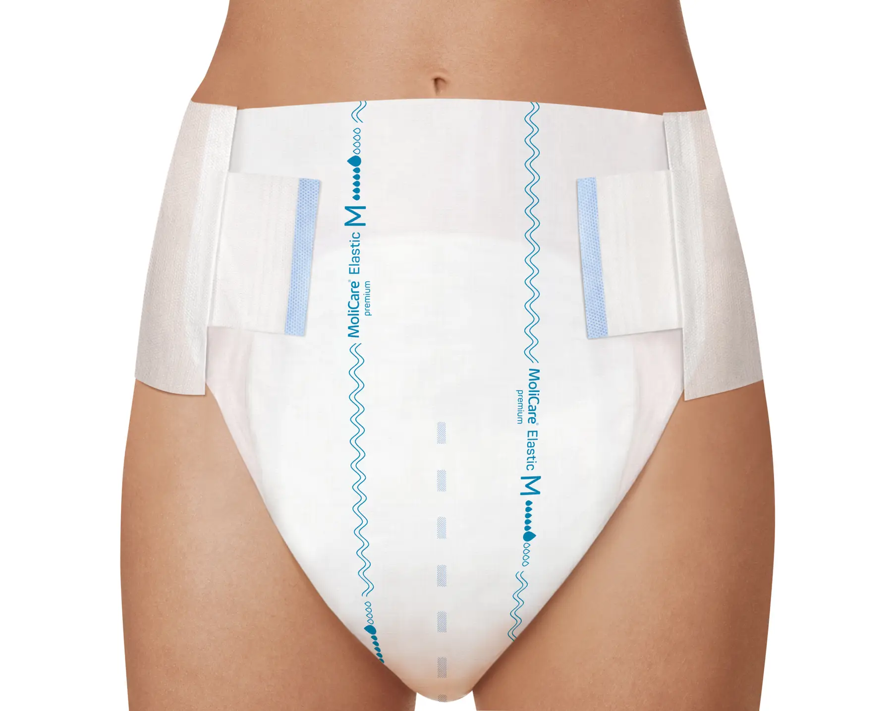 MoliCare® Premium Elastic - це одноразові універсальні підгузки для людей з нетриманням сечі та калу, що забезпечують надійний захист від протікання та зручну посадку для жінок і чоловіків. Система ElasticFIX - це унікальна комбінація запатентованих еластичних бічних панелей та стрічок, що повторно закриваються, забезпечує легке використання та надійну посадку. Лінійка MoliCare® Premium Elastic доступна в шести рівнях поглинання, від розміру S до XL.