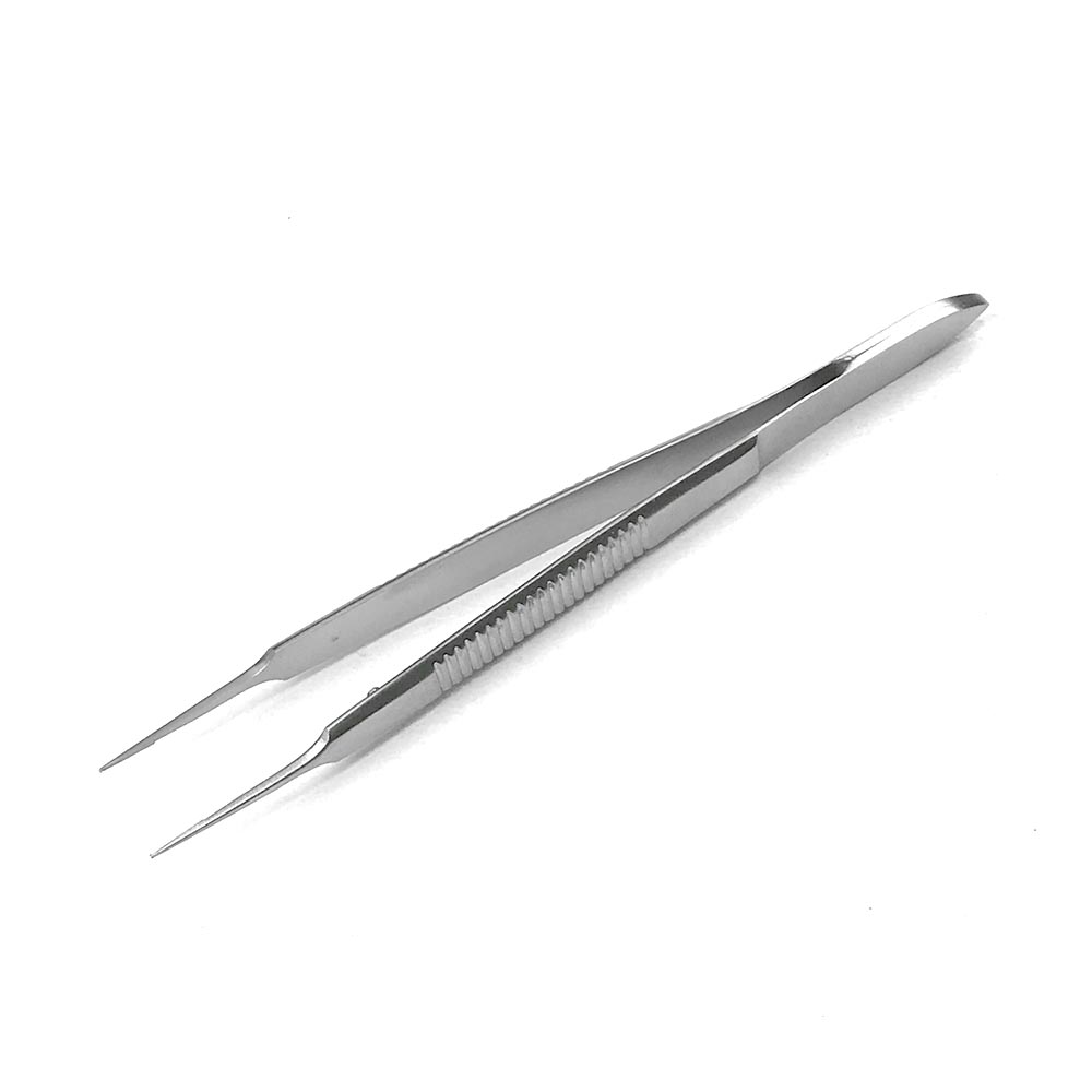 Опис Пінцет Surgiwelomed для зав'язування шва 1x2 зубця. Довжина 9,5 см, робоча частина 0,2 мм