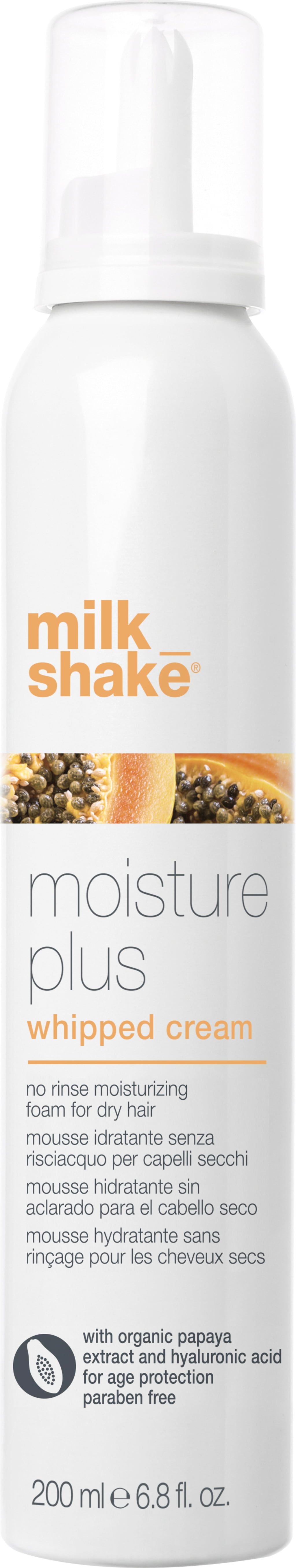 Moisture Plus Whipped Cream від milk_shake забезпечують сухому волоссю довготривалу еластичність і зберігають рівень вологи. Волосся стає м'якшим, сяючим і наповнюється життєвою силою. Органічний екстракт папайї, Integrity 41 ® і гіалуронова кислота забезпечують додатковий захист кольору та антивіковий догляд.