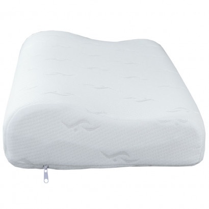 - Подушка з ефектом «пам'яті» повторює контури голови і шиї, забезпечує правильне розташування хребта і рівномірний розподіл ваги.