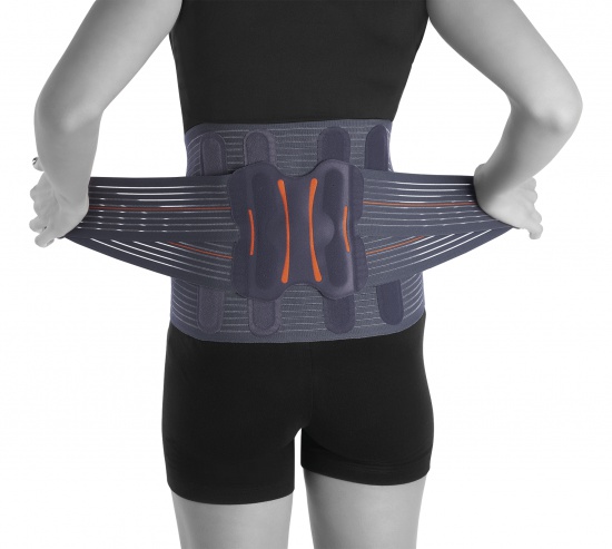• Конструкція корсета ефективно стабілізує та розвантажує поперековий відділ за рахунок додаткового фіксатора.
