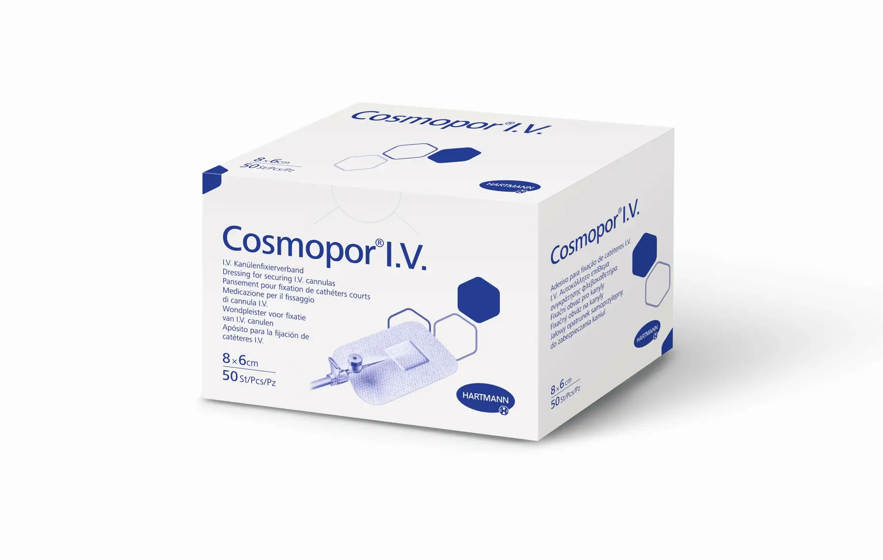 Опис Пов’язка пластирна для фіксації канюль Cosmopor® I.V. / Космопор Ай.Ві. 8см х 6см 1шт