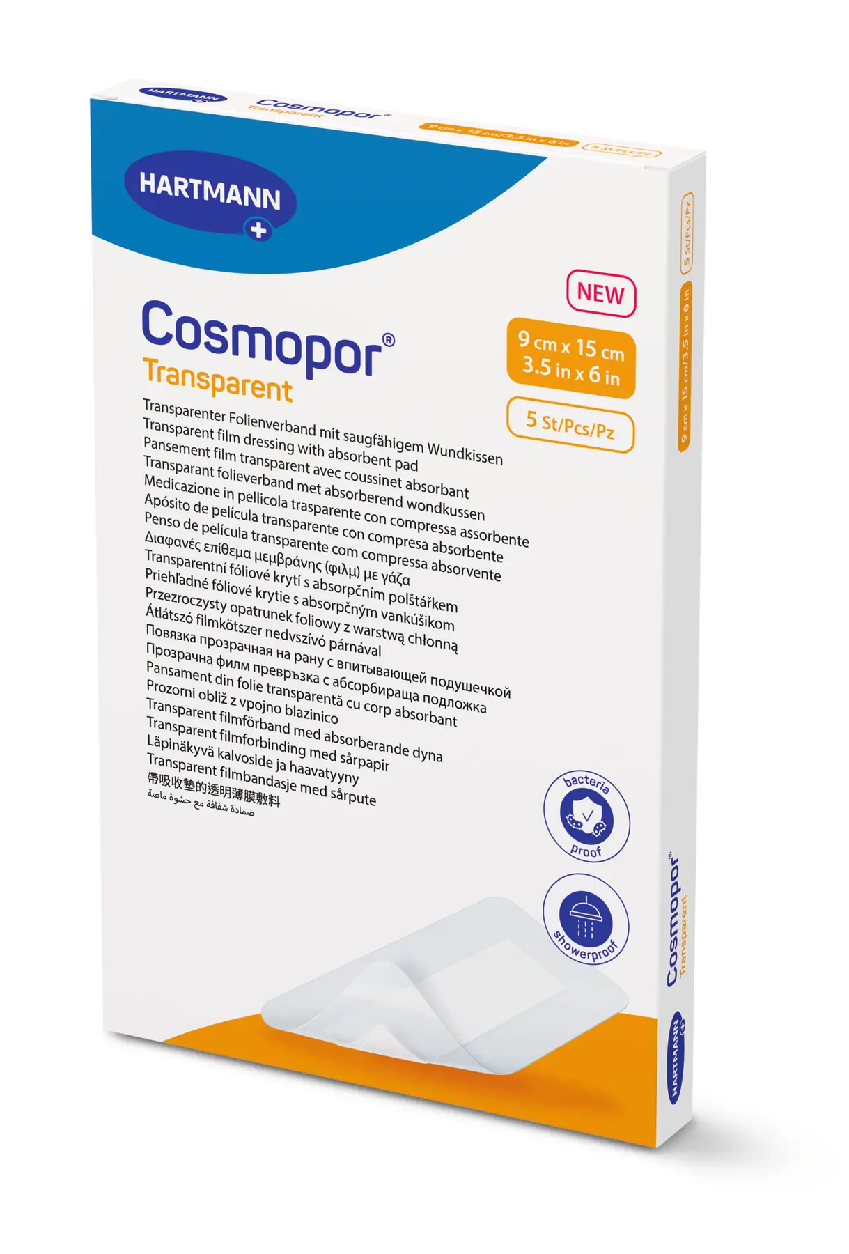 Опис Пов’язка плівкова прозора з абсорбуючою подушечкою Cosmopor®Transparent 9см х 15см