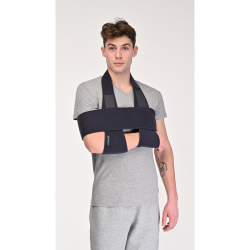 Бандаж розвантажує плечовий та ліктьовий суглоб, дозволяє верхній кінцівці зайняти фізіологічно вигідне положення. Ефективний та універсальний після травм руки будь-якої локалізації.