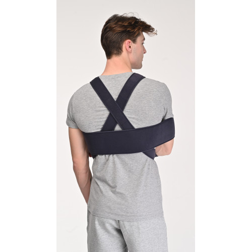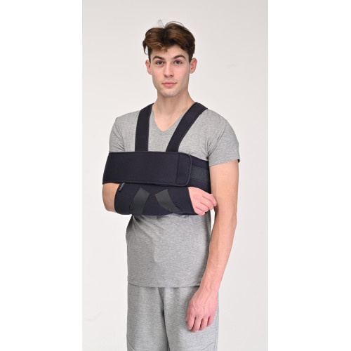 Бандаж на плечовий та ліктьовий суглоби забезпечує надійну фіксацію верхньої кінцівки у функціонально-вигідному положенні. Знімає навантаження з плечового та ліктьового суглобів, звільняє від напруги плече, передпліччя та кисть. Може замінити гіпсову пов'язку.