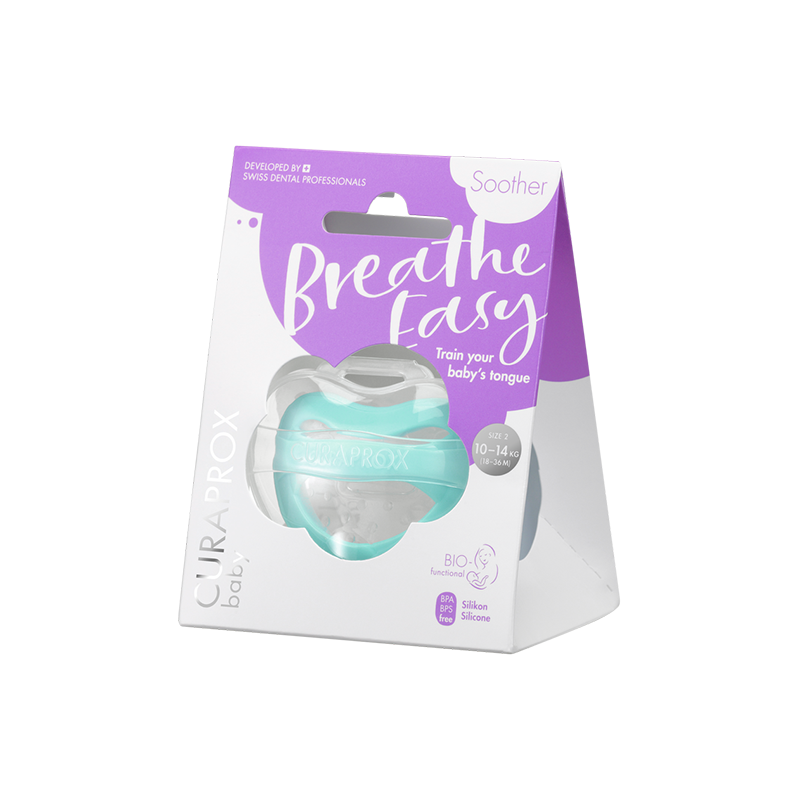 Соски круглої форми інших компаній чинять сильний тиск на небо дитини. Цей тиск посилюється вакуумом, що створюється при ссанні. За рахунок плоскої форми соска Curaprox не створює тиску в ротовій порожнині, піднебіння розвивається правильно, регулюється правильне носове дихання, також йде розвиток правильного прикусу.
