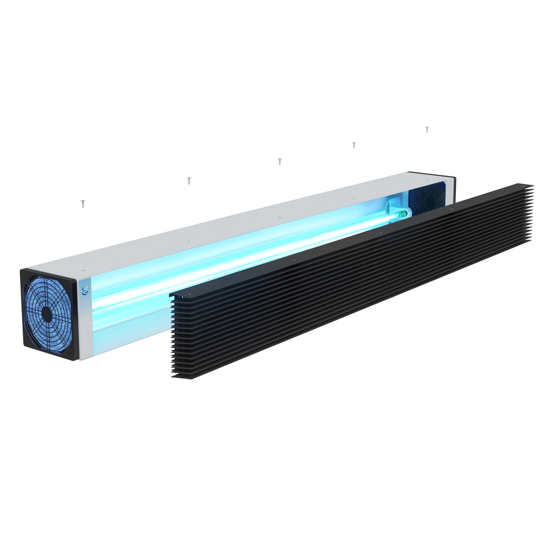 Віддзеркалювач з полірованого алюмінію максимально ефективно відбиває ультрафіолет, а його конструкція у поєднанні з точним позиціонуванням лампи сприяє максимальному виходу через жалюзійну решітку прямих і відбитих ультрафіолетових променів.