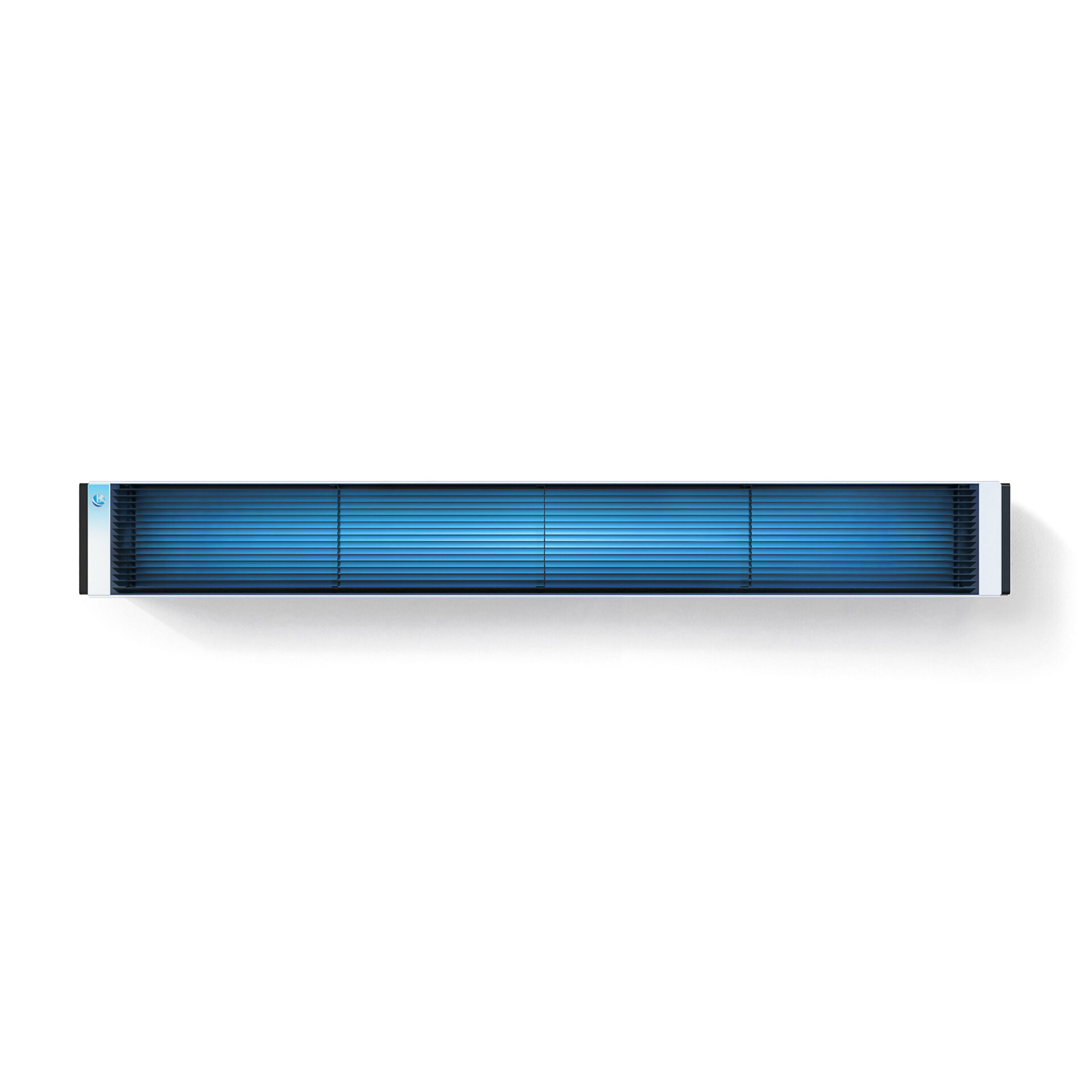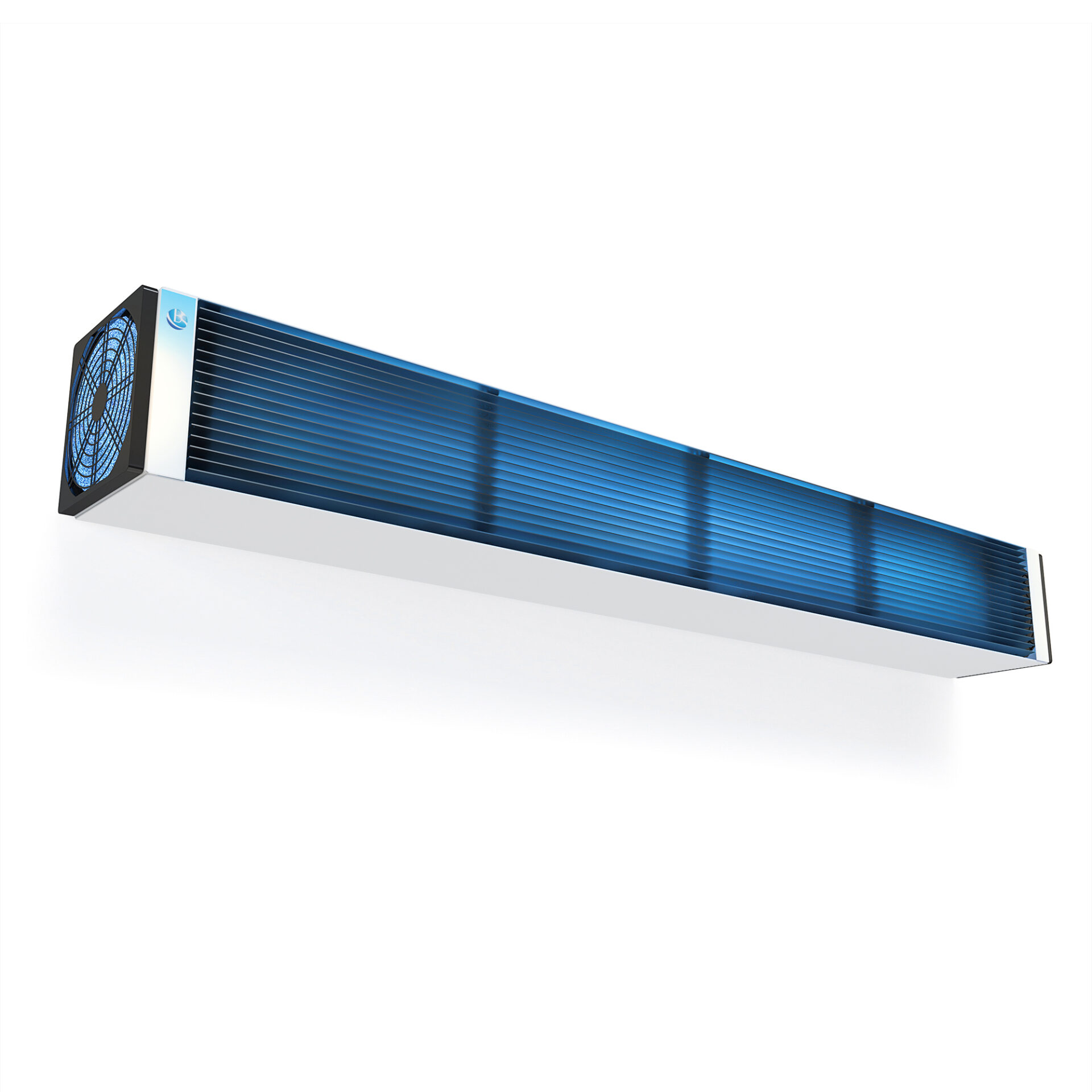 Випромінювання бактерицидної лампи, що виходить із пристрою через жалюзійну решітку, знезаражує повітря у верхній частині приміщення.