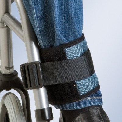 Фіксуючий пояс для гомілки в коляску, виготовлений з поліаміду, піни та поліестеру. Має регульовані застібки. Рекомендується використовувати для надійної фіксації гомілки пацієнта до підніжок інвалідного візка. Підходить для фіксації пацієнта на ліжку або сидінні, щоб уникнути вільного руху однієї чи двох кісточок.