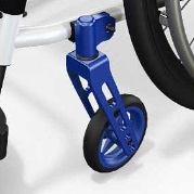 Особенности крепления переднего колеса позволяют адаптировать сидьенье коляски без привязанности к передним колесам, поскольку есть возможность регулировки высоты коляски вцелом от 43 см до 53 см.