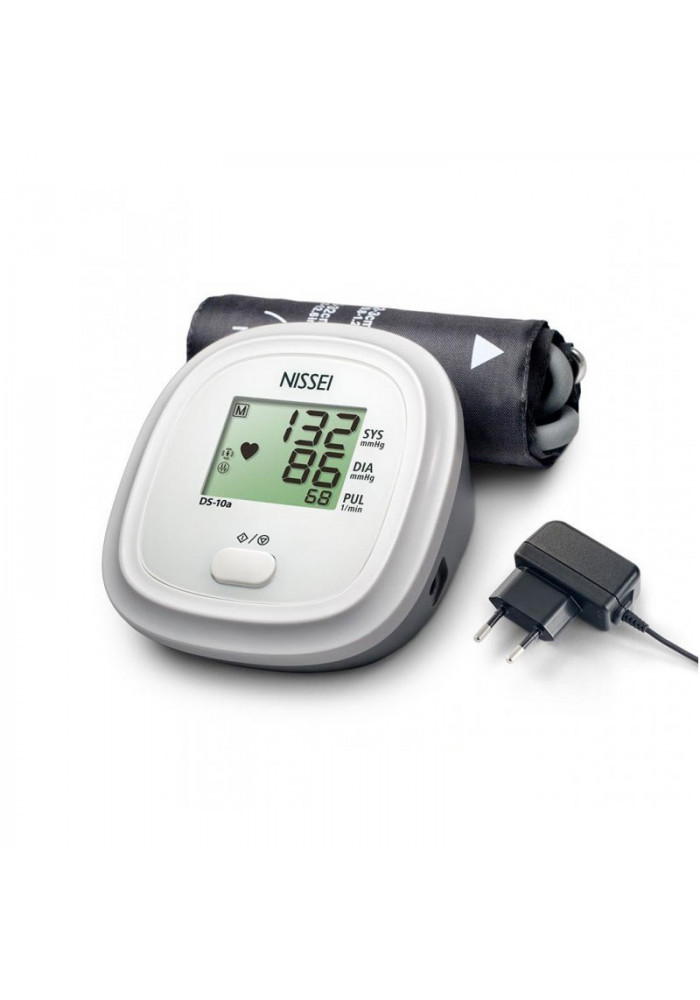 NISSEI DS-10A - автоматический тонометр с измерениями на плече. Диапазон измерений давления: 40 - 250 мм рт ст. Измерение в процессе накачки. Стандартная манжета (22-32 см)