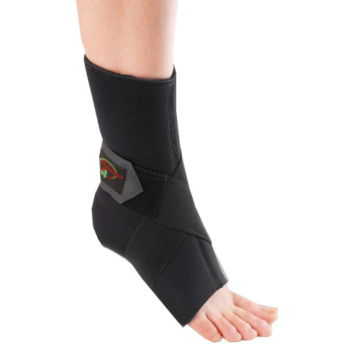 Модель представляет из себя аэропреновый носок с пришитыми к нему дополнительными восьмиобразными ремнями, которые оборачивают сустав по принципу профессионального тейпирования и степень их затяжки регулируется липучками. Аэопреновый бандаж для усиленной стабилизации голеностопного сустава и надежной защиты при занятиях спортом надежно фиксируется и оптимально прилегает к суставу.