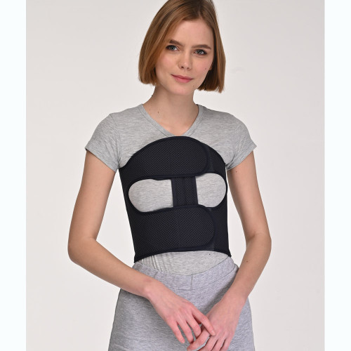 Бандаж реберный послеоперационный разъем на грудные клетки, женский, анатомической формы формируется из эластичного бандажного полотна и многослойного материала, предназначенного для использования после операций на грудной клетке, после ушибов и переломов грудной клетки, а также после травмы грудной клетки.