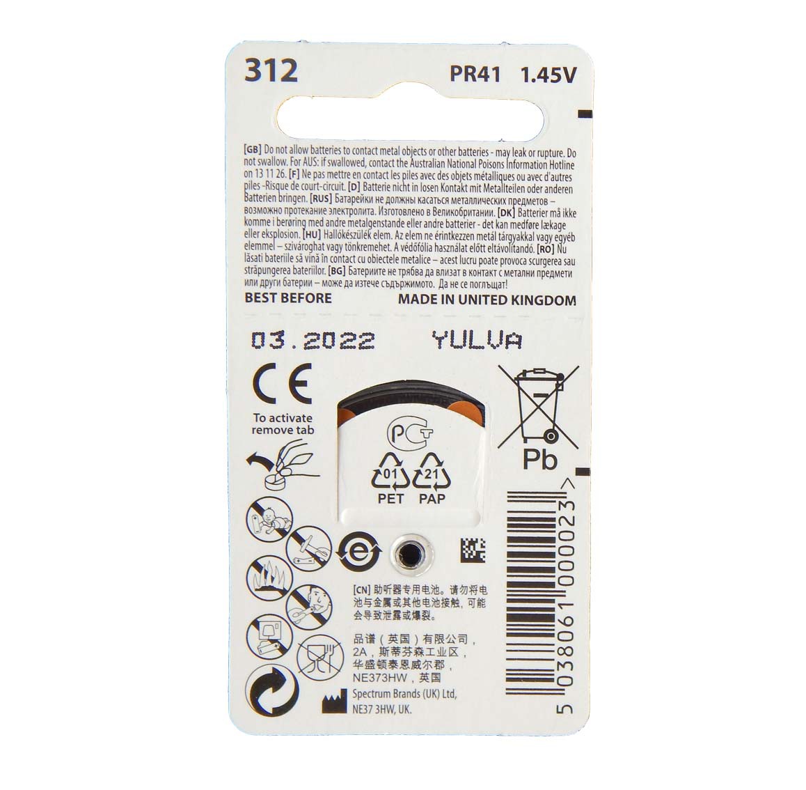 Батарейки для слуховых аппаратов Rayovac №312 (PR41) – 6 шт мощность, продолжительность и надежность.