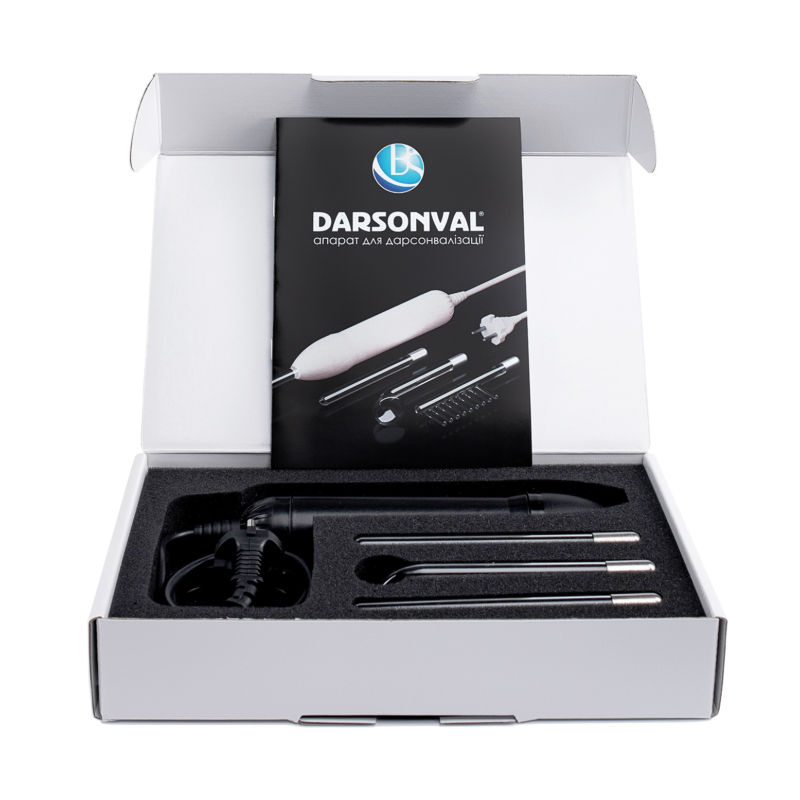 Дарсонваль комплектується трьома найнеобхіднішими насадками-електродами: «Універсал» для делікатної точкової обробки, «Коло» багатофункціональний для всього тіла, «Гребінець» для волосся.