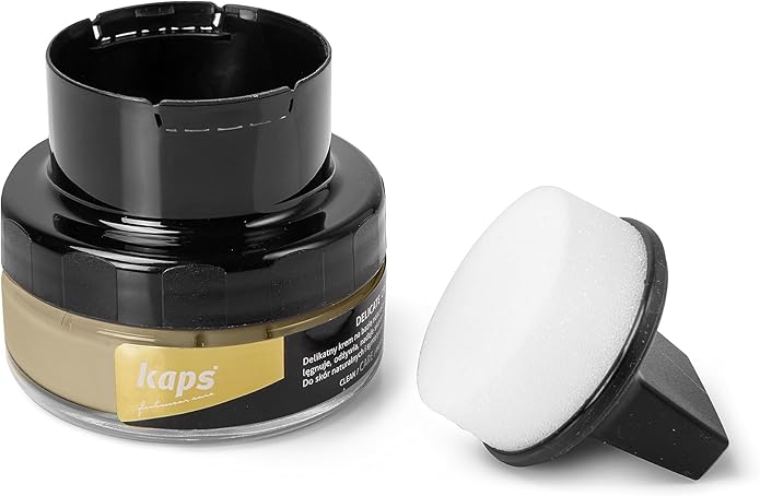 Мягкий крем для взуття з аплікатором Kaps Delicate Cream z aplicatorem доглядає та відновлює колір усіх видів виробів з гладкої, тонко виробленої та делікатно фарбованої шкіри (наппи, аніліну тощо).