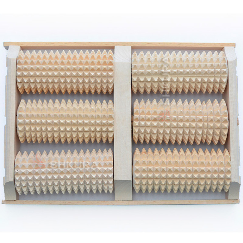 Роликовый массажер для ног изготовлен из натурального бука, прочный, комфортный для массажа и эстетически привлекательный.