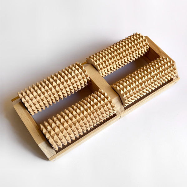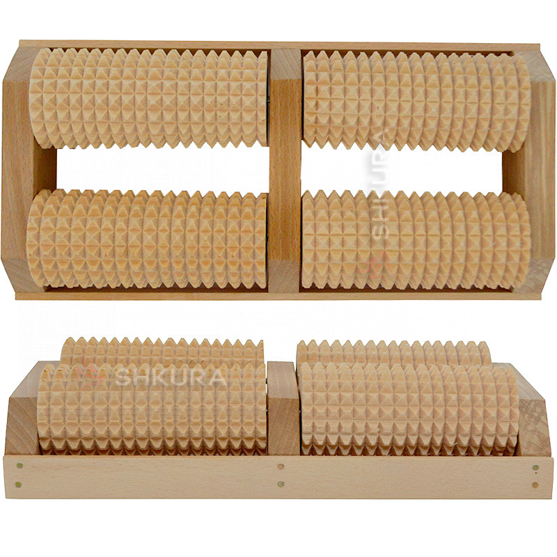 Роликовый массажер для ног изготовлен из натурального бука, прочный, комфортный для массажа и эстетически привлекательный.