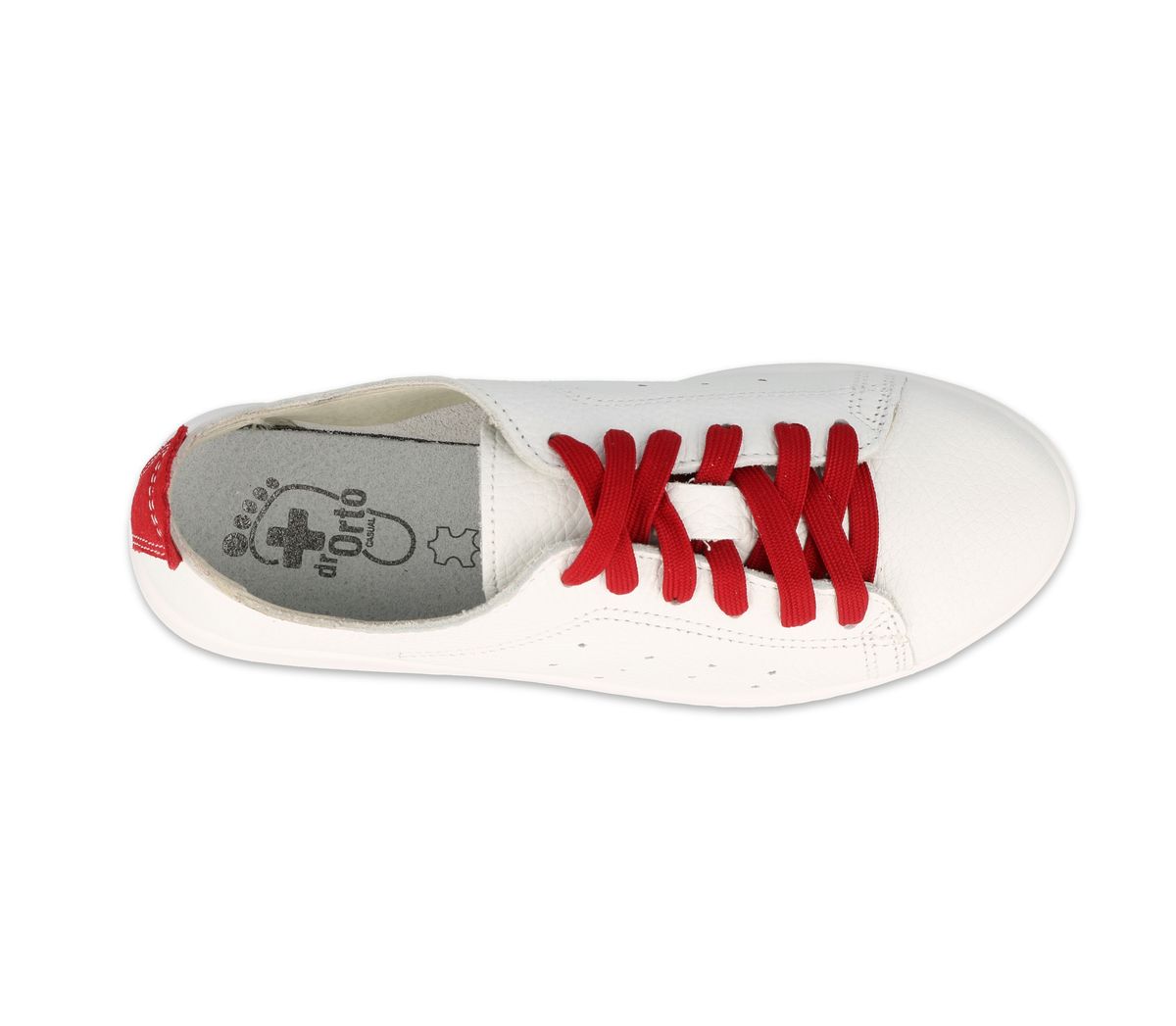 Женские кроссовки Dr Orto Casual 156D008 изготовлены из качественных материалов, что гарантирует долговечность и защиту от потения ног. Белого цвета, с перфорацией для лучшей воздухопроходимости. Данная модель имеет задник и шнуровки красного цвета.