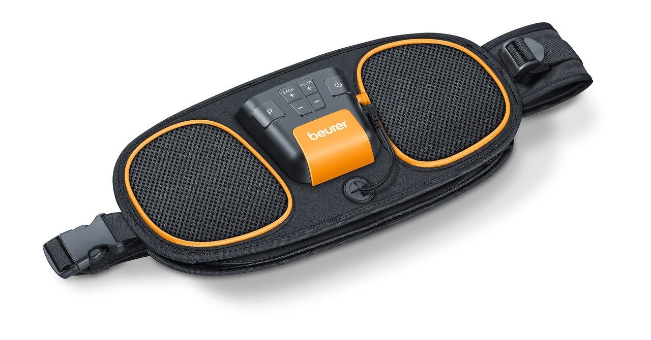 Миостимулятор для тренировки центральных мышц живота BEURER EM 39, эффективное дополнение к физическим нагрузкам с целью придать мышцам красивую форму, не требует смены электродов, удобно крепиться в виде пояса, управление, аварийное отключение в случае неправильного использования.